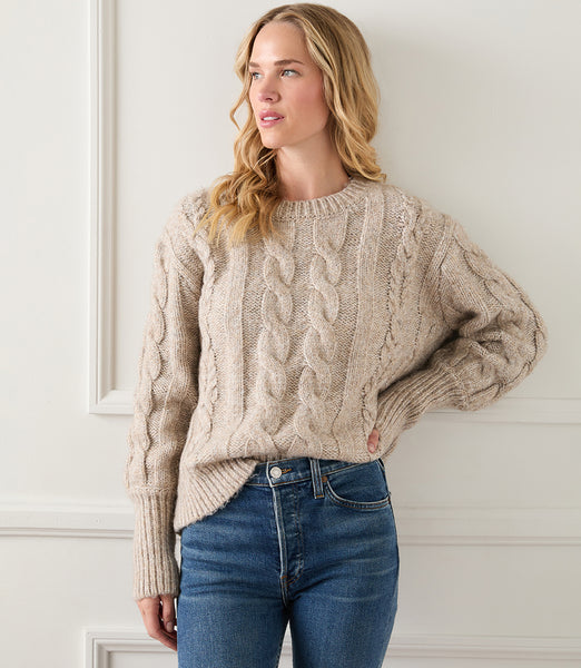 The Bolton Cable Knit Sweater In Oatmeal Piper Scoot